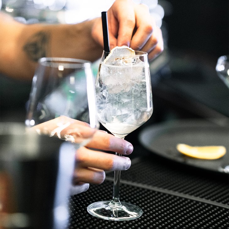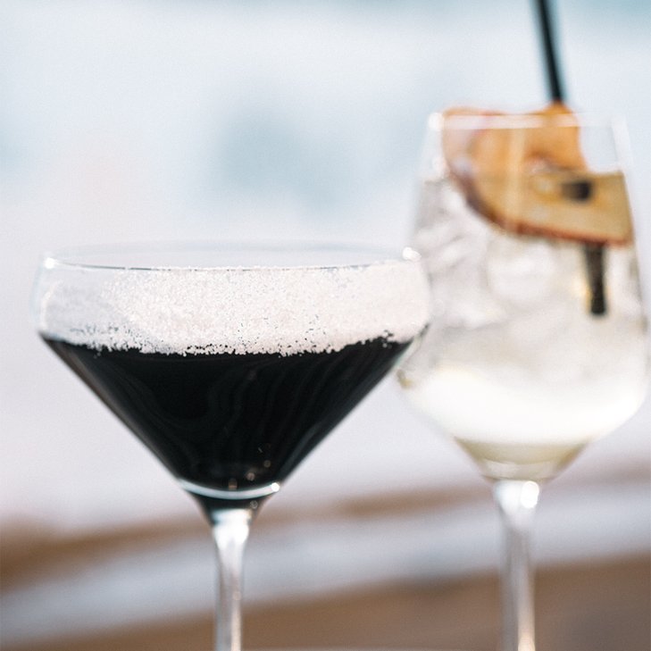 A deep and powerful tribute to the lake. Lingonberry rum and blackcurrant liqueur meet fresh malic acid for a perfect balance of sweetness and acidity. A berry and rich flavor experience topped with blackberry foam.
