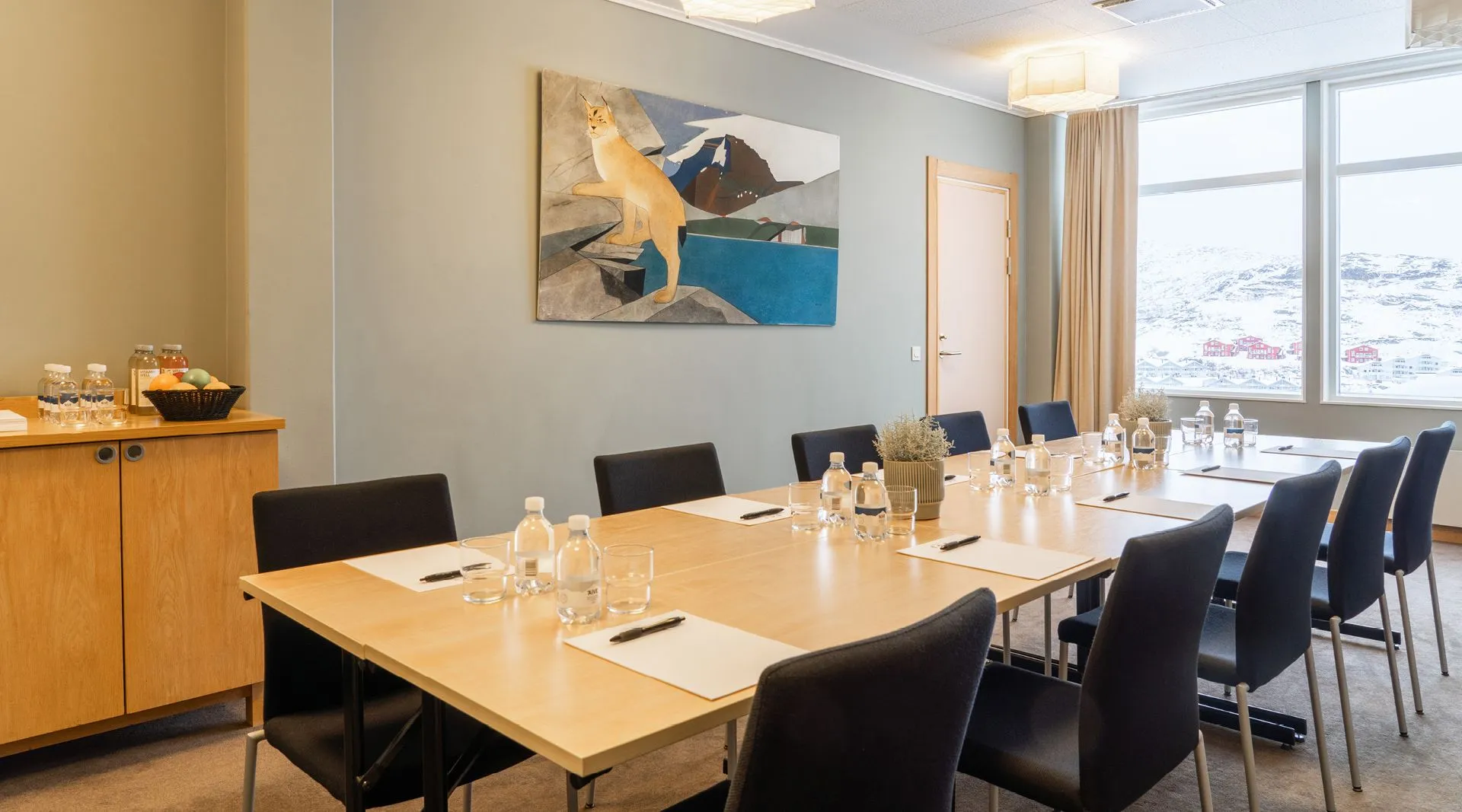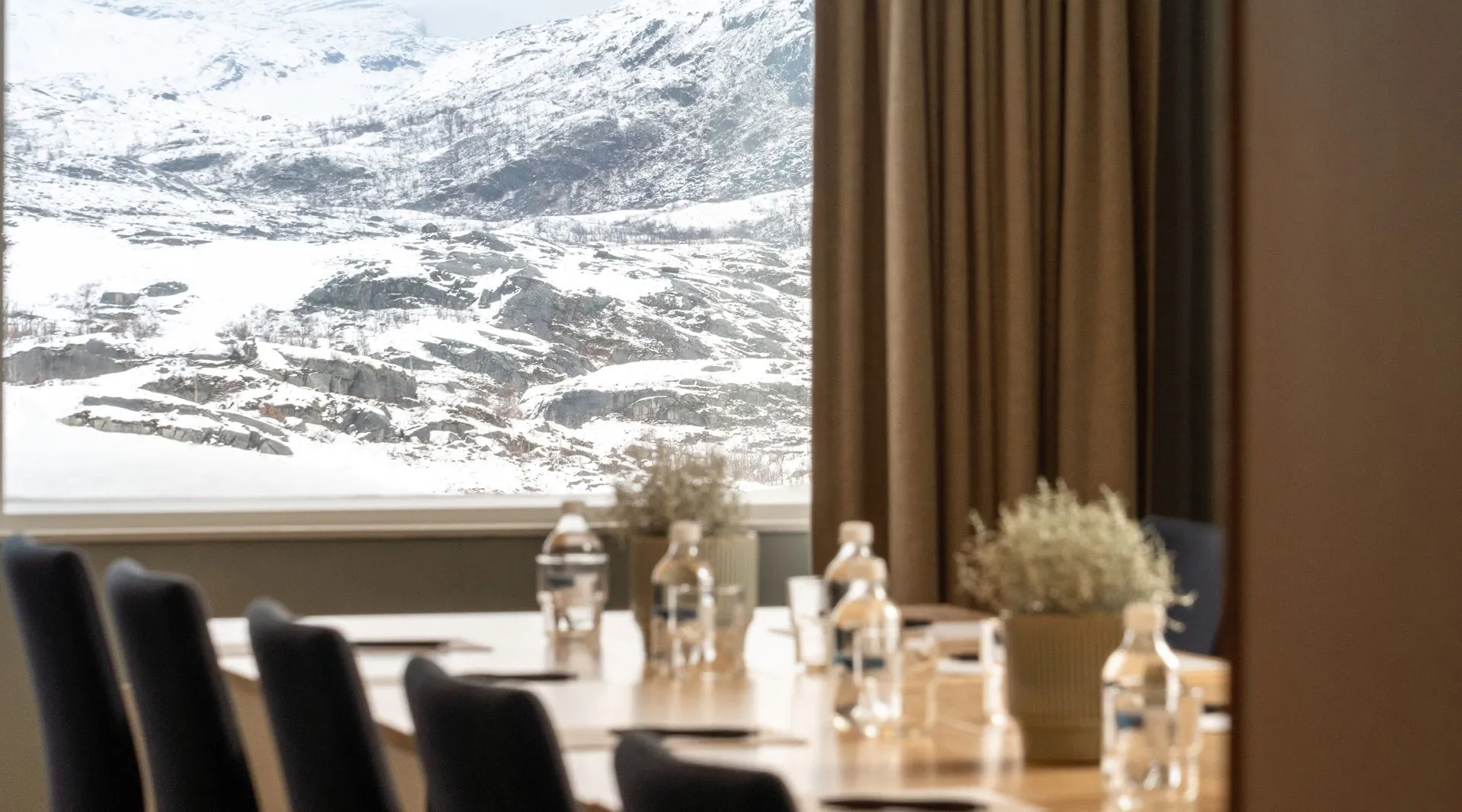 Marie Pigg är ett mindre, trevligt konferensrum med inspirerande utsikt mot sjön Vassijaure. Med plats för upp till 14 personer samt panoramavyer över fjällen, är det en perfekt miljö för kreativa och engagerande möten. Är ni en större eller mindre grupp, går det självklart bra att anpassa konferensrummet antalet personer.